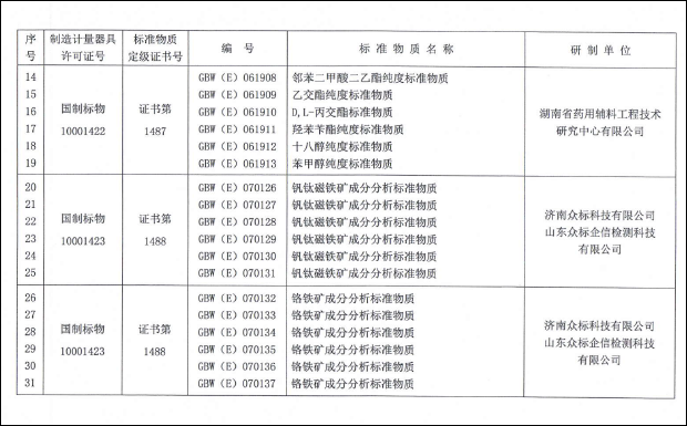 国质检量函〔2015〕235号各直属检验检疫局,各省、自治区、直辖市及新疆生产建设兵团质量技术监督局(市场监督管理部门),国务院有关部门,各有关单位:根据《中华人民共和国计量法》和《标准物质管理办法》的有关规定,现批准“硅铁成分分析标准物质”等79种标准物质为国家二级标准物质(见附件1),列入中华人民共和国标准物质...