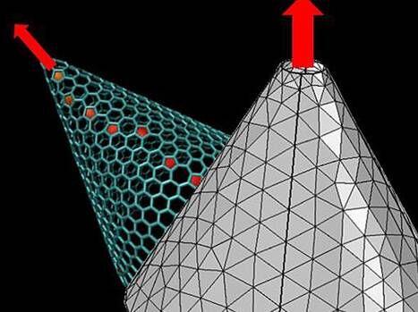 目前莱斯大学已经利用电脑模型证明了用另一种方法可以开发石墨烯的灵活性,即扭曲石墨烯来改变它的电性能。莱斯大学与莫斯科的研究人员合作发现在纳米锥中该效应是明显的且可预测的,应该同样适用于其他形式的石墨烯。研究人员发现它可能接近所谓的一种电子挠曲电效应,通过按某种方式扭曲石墨烯,它的电子性质可被控制。