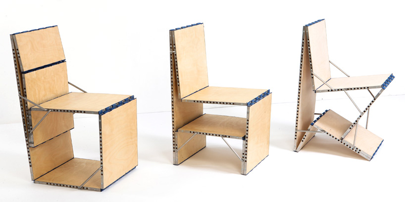 “loop chair”是设计师 boaz mendel的作品,这款座椅是由7块长度不同的板子组成,这些板子再用五金件相互连接形成一个回路。完成后的设计可以自由创作多种不同的家具形式。折叠五金连接件并附加一些特殊的链接装置可以改变这款椅子的形态,根据需求满足不同的需要。每一种折叠位置都有确定的功能,而且它们还有可能在一瞬间...