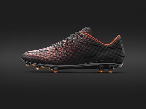 耐克发布了一款会变色的足球鞋,设计师在鞋面上使用了特殊的黑色热感材质,此种材质遇热后可变色。球员在场上积极的奔跑会让鞋内腔温度升高,随着温度升高鞋身也由黑色转变成亮眼的橙色斑点。然而当运动员脱下球鞋,随着鞋腔内稳定降低,球鞋外表面又会迅速变回全黑色。