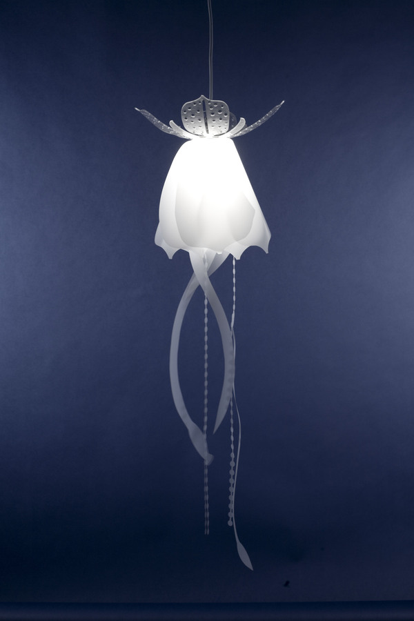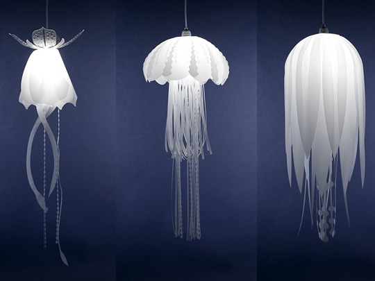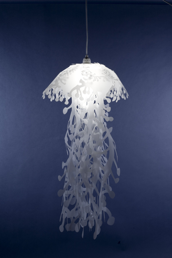 海底世界有很多美丽的生物,水母便是其中只有一,设计师Roxy Towry-Russell的这组灯具设计灵感便来源于水母,柔和飘逸的乳白色主体加上底部形态各异的长长流苏,如游弋着的水母般飘逸灵动,让人仿佛置身于海底世界,这样一盏华丽的美灯放在居室里,一定非常浪漫。这个不同寻常的设计会让您的家里看起来像海底世界,如果你喜欢...