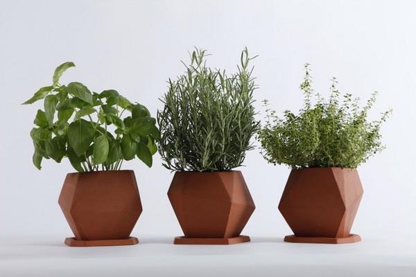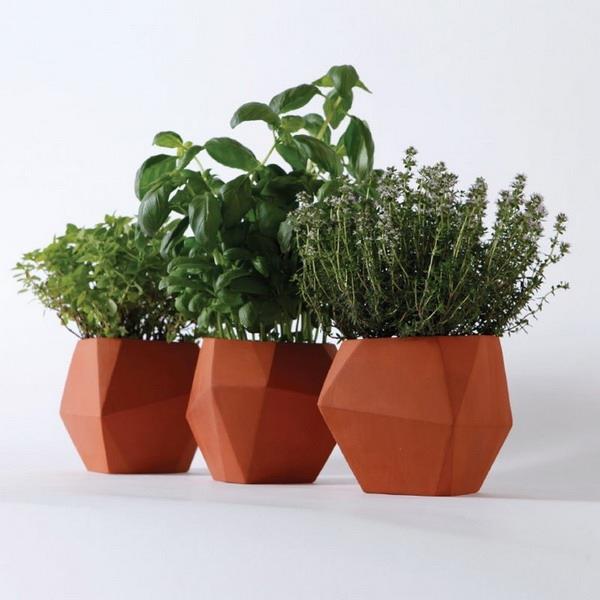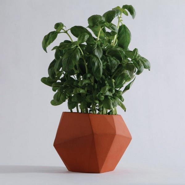 Herb赤褐色的几何陶土花盆。现代的造型和朴素的陶土质感让Herb看起来有一种不一样的美感。