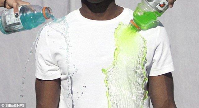 美国一位大学生最新设计一种不会弄脏的T恤衫,当可口可乐、番茄酱、芥末、奶昔、啤酒、墨汁,甚至红酒,溅落在该T恤上,不会留下任何污渍。 这种T恤衫是由聚酯纤维制成,结合防水的化学物质,尽管如此它穿着之后并不会感到与其它衣服有任何差异。旧金山大学生帕特尔是该T恤的设计者,他使用一种喷雾化学物质制造了原型T...