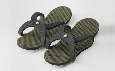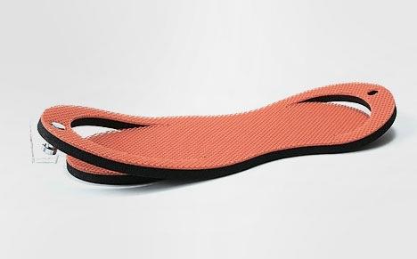 超便携拖鞋设计,不穿时可以展开成平板放进背包、行李箱里,甚至电脑包里装下它都没问题,泡沫材质重量轻携带无负担,需要穿着时则只需将两端向上弯折并扣到一起,只需几秒一双拖鞋就炼成了。在提倡绿色环保很多酒店都已不提供一次性拖鞋的今日,常出差的旅人想必会用得到这样的装备。