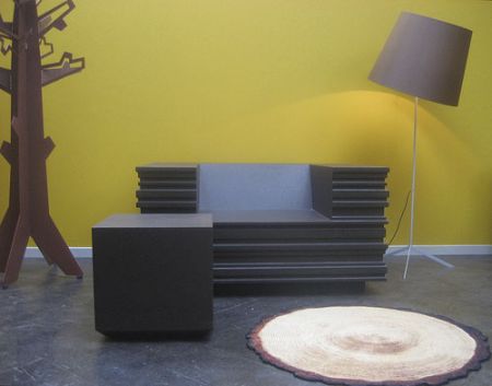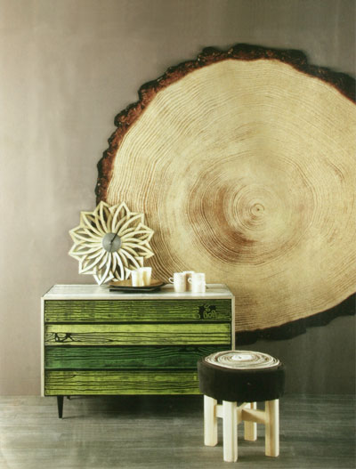 想要给钢筋水泥盒子内部添加一些自然风物么?这款木纹地毯绝对适合您!设计师将近似圆形的地毯表面做成了被砍伐后树木剩下的树桩模样。把它铺在地板上,地毯精细的做工、巧妙的拟物手法会给来访亲友带来不小震撼呢!