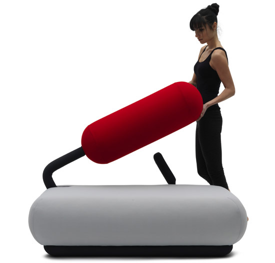 德国设计师Tobias Fraenzel为意大利家具制造商Campeggi 设计了这个特别的沙发:Champ。将它的后背靠垫树立起来,靠垫就变成了一个拳击袋,多余的能量可以发泄到它上面了。