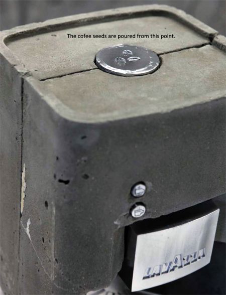 厨房用具和日常用品大都是塑料或金属质地,建筑用混凝土材质的极其罕见。一位学生突发奇想,用混凝土制作了这款咖啡机。这款咖啡机包含咖啡豆进口、工作指示按钮、注水口和咖啡出口等,可以制作可口的浓咖啡。设计者希望这款产品不仅可以达到装饰作用,还可以获得消费者的喜爱。