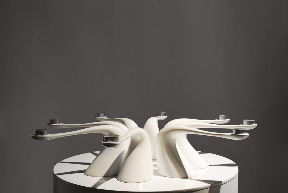 尺寸:L310*W110*H155 材质:树脂、烤漆借由对太极的理解,将其精髓诠释于小小的烛台之上,烛台所呈现的动势之力集中于底座部分,退而待发的力道带有极强的冲力。推手而出,将烛台的落点送出,形似一片落叶,却也能够如此的承载能力。