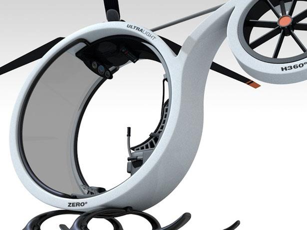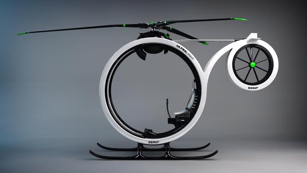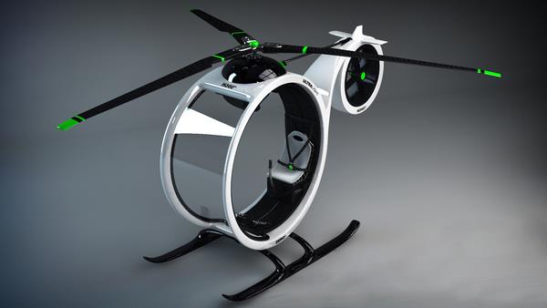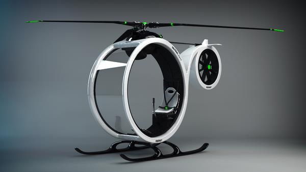 这是一款致力于解决交通拥挤的直升飞机新理念,设计的概念来源于0,形状也像零。