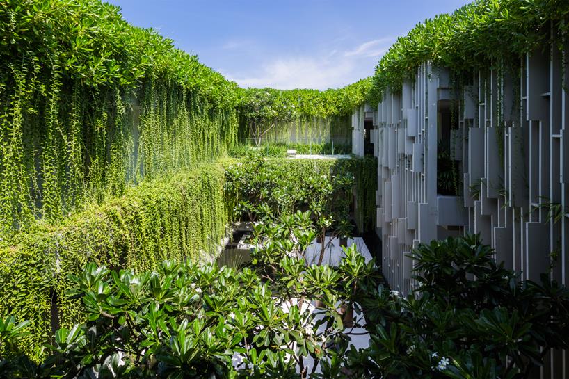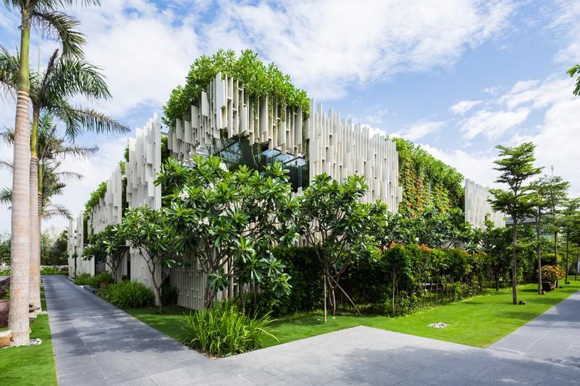 越南的MIA设计工作室,在当地岘港市的纳曼度假村中建造了一处,于热带环境中闹中取静的“绿洲”。这座SPA馆,从里到外都满饰着外覆植物,空中花园和绿化墙体。此外,15个五星级设施配备的独立理疗室,与开放式花园融为一体;使人见之忘俗,营造了安静祥和的氛围。
