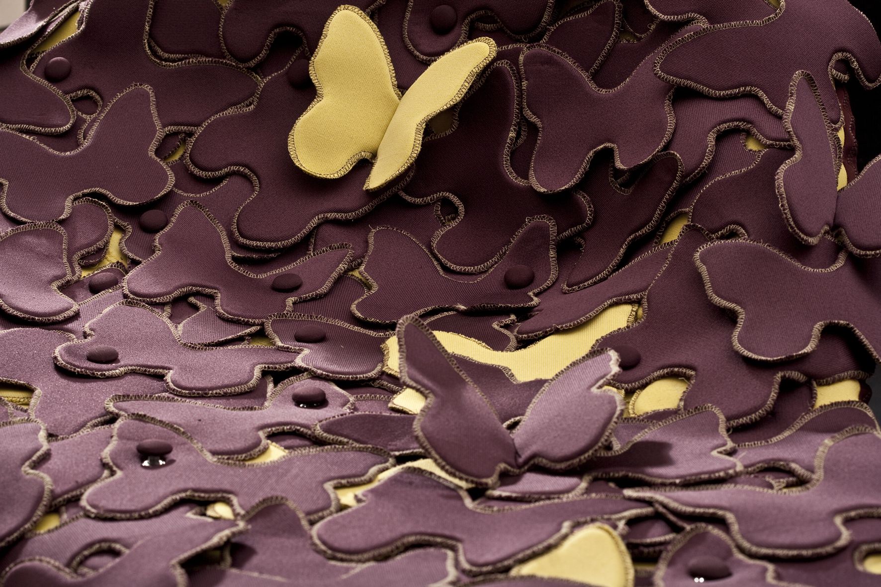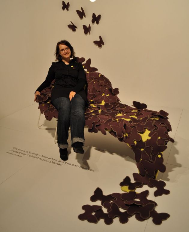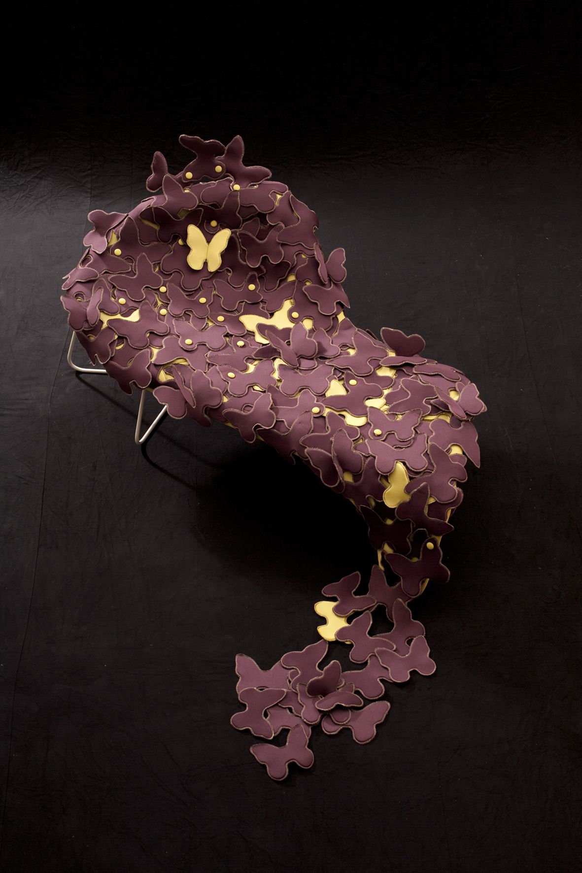 来自d.sign21设计室的德国设计师Simone Völcker带来这张蝴蝶沙发椅:Papillon chaise longue。成百只蝴蝶飞舞追逐的画面构成了沙发椅面。