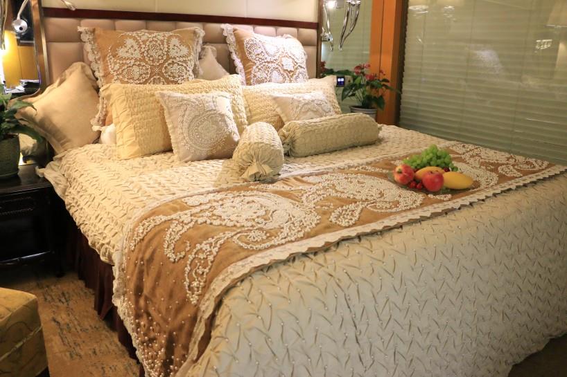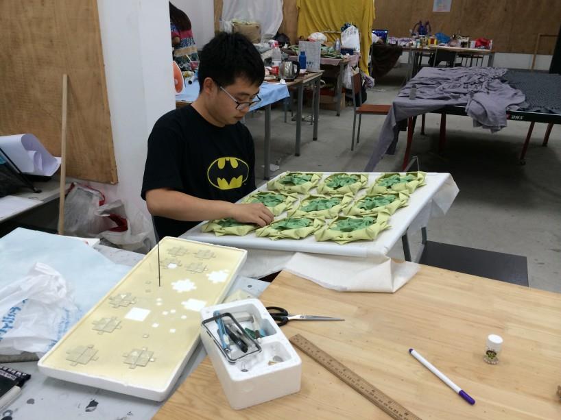 这些软装饰作品是由西南交通大学纤维艺术设计研究中心的设计者们经历了概念设计、材料选取、单体制作、成品制作等阶段,花了四个月的时间纯手工精心制作而成的。成品都是设计者们先了解了扎染与面料再造国内外的发展现状,结合了传统与现代的因素,在查阅相关的资料后,确定在居室空间中需要制作的物品,选择卧室或餐厅作为设...