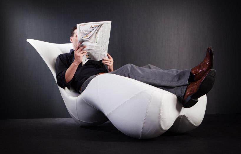 伦敦设计事务所splinterworks设计的“bodice rocker”在垂直放置的时候,会呈现拟人化的雕塑形态。有些人会觉得这把椅子类似一个半身像,或是臀部,但在众多神似的曲线形中,很多人会觉得它像一个弓形足。只要轻轻一碰,椅子就来回摇摆,然后在半空中停住,就好像在失重状态下一样,公然无视地球重力的作用。在这个状态下,椅...