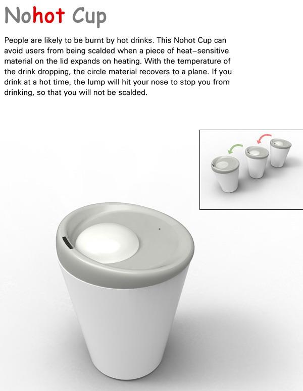 利用水温来让杯子发生一些变化,来实现美观、趣味或者有实际作用(如温度指示)等目的,过去不少设计师都带来过类似的设计,而要防止不知情的使用者被热水烫到,这只“Nohot Cup”利用温度让杯盖上的特定区域膨胀起来,顶到饮水者来起到提醒的效果。 原理很简单,也本着解决我们生活当中的实际问题而去,思考的角度当然是值得...