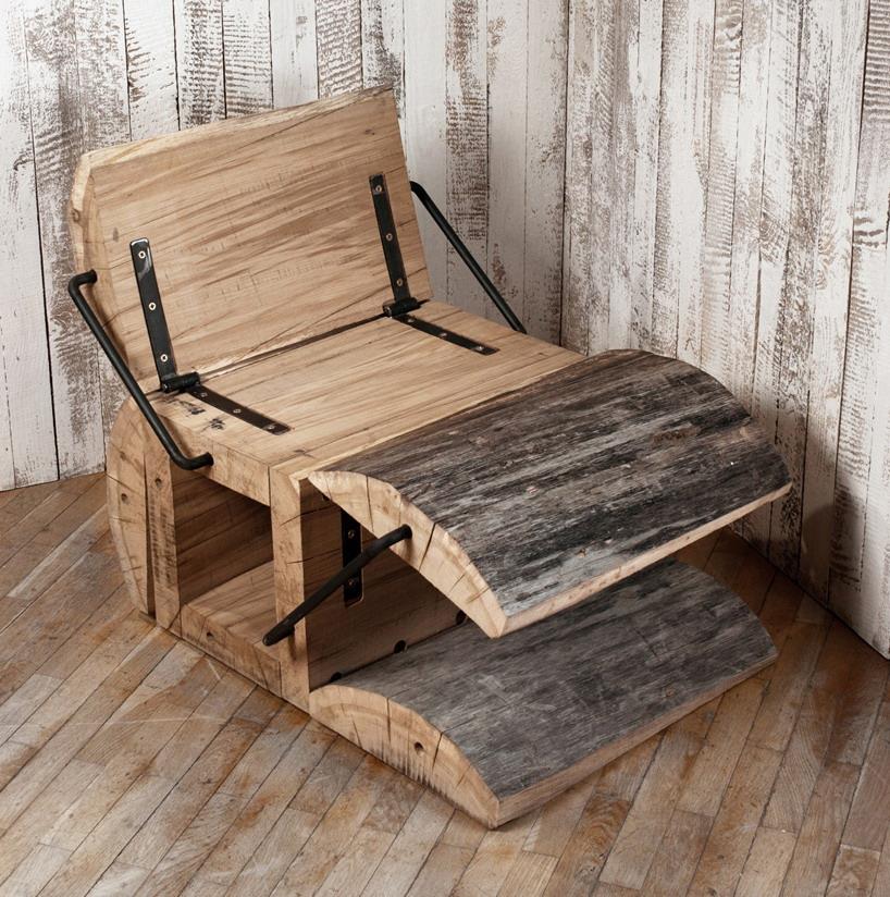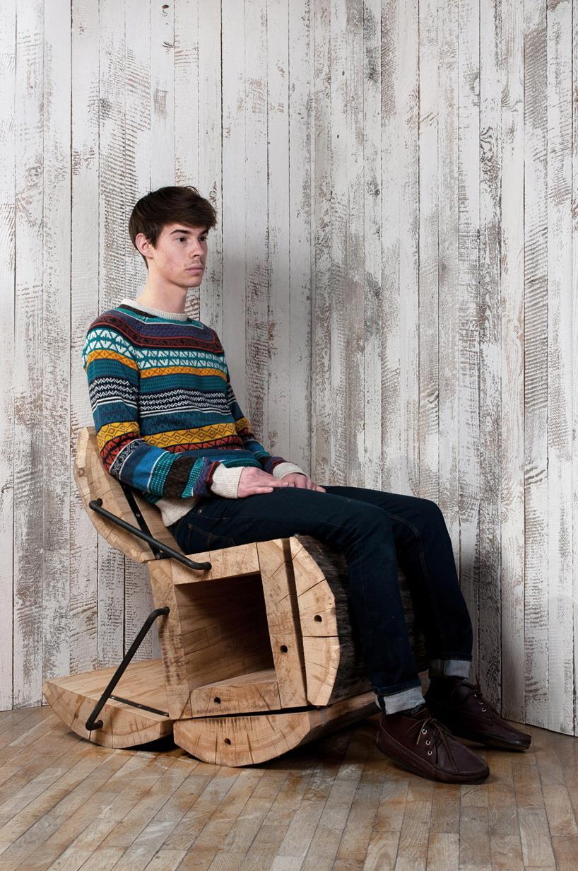 匈牙利architecture uncomfortable workshop用制作木梁架剩下的废弃橡木料设计制作了这个“waste less chair”——这是一把可伸展的座椅,可以打开变形,形成两种座椅,一种是摇椅,另一种是有支腿的躺椅。不用的时候,这个椅子可以完全收缩,折叠成圆柱形的树干形状。