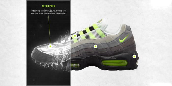 为了纪念和庆祝Air Max 95诞生二十周年,耐克推出了两款全新的Nike Air Max 95鞋款:Nike Air Max 95 UltraJacquard和女款Nike Air Max 95 Ultra。Air Max 95是“与众不同”一词的集中体现。前所未有的双Air-Sole设置,大胆的轮廓设计,以及黑色中底让Nike Air Max 95成为了Nike Air Max系列中的“异类”,更成为了传统跑鞋的...