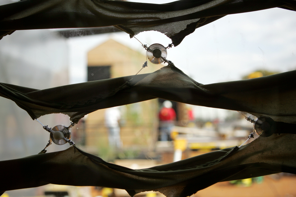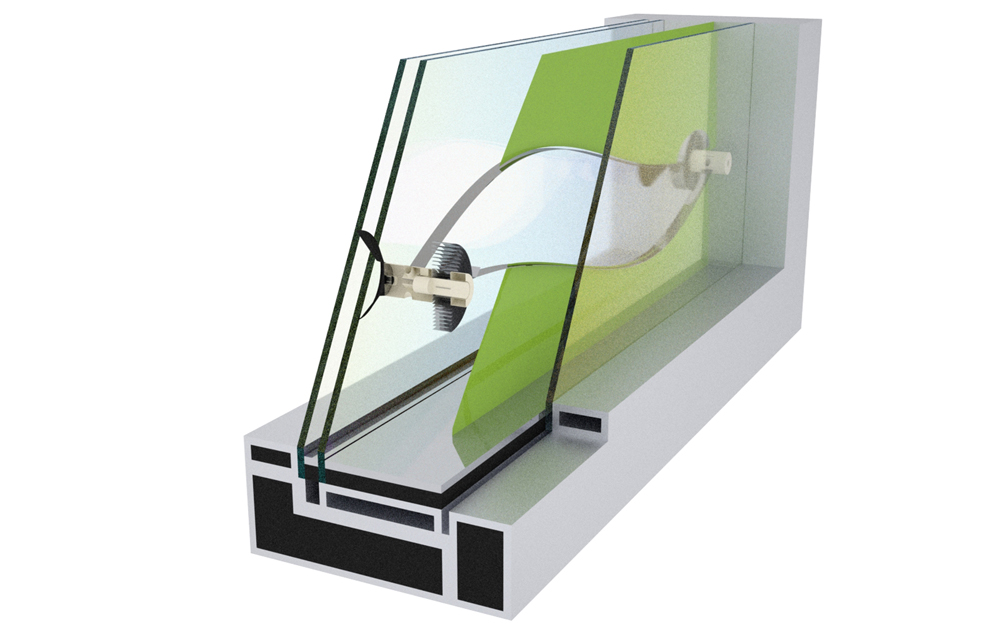光影调节器是在玻璃之间的空隙中制造可活动机制的一个装置,它可以调节一个特定空间内的阳光,影子和遮荫。这个装置通过太阳提供能量,机械装置被动地张开或是闭合,从而达到理想舒适度。系统的双金属结构同时与高倍数合金和低倍数合金相连接。温度的细微变化便会导致两个合金之间产生相反的力,从而产生相关元素的变形和旋转...