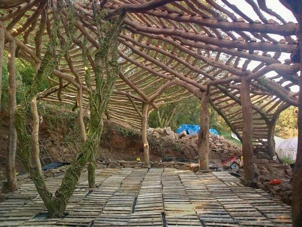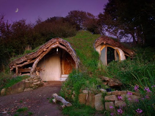 这间位于威尔士乡村的生态小屋是Simon Dale一家四口的幸福窝,由Simon和他岳父花4个月时间盖成树干支架,草堆隔热层,石膏墙面,塑胶布和泥巴铺顶,屋顶被草和小花覆盖…. 原始、自然得象从地里长出来的,让人想到魔戒中hobbits住的小屋