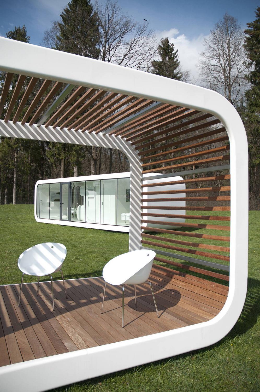 图片提供: Coodo这套住宅很好地满足了尽量少地占用土地的前提下给人们提供舒适别墅又美观的居住环境的需求。设计师设计的这套住宅采用了现代的设计手法,创新的建造方式和时尚的材料,使这套住宅能适应各种不同的环境,最大限度地满足顾客需求。这组住宅包括多功能凉亭、绿廊、户外厨房、客厅和可移动住房。顾客可以自行选择...