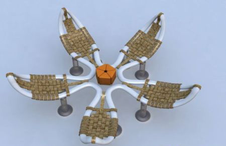 受到大自然鲜花绽放时优美形态的启发,葡萄牙设计师设计了这款“花瓣”形状的公共座椅。它的五个座位由高密度的聚丙烯和回收塑料制成,靠背则由橡树藤条编织而成。座椅底部还加装了从废旧汽车上的减震器,坐起来更加舒适。在钢筋水泥的城市中,这款身姿优美的座椅或许可以给您带去大自然的感受!