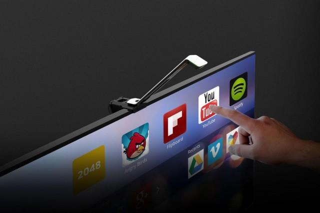 现在各种触摸屏,你是不是习惯性看到屏幕就手贱想滑来滑去。譬如你家的大电视机若是能触摸,那定是极好的。这都什么世纪了,当然可以啦。只需要安装这么一个小装置,你的电视机立马变身触屏。摄像头和红外传感器为你帮忙,小设备也自带软件,当然可以和你的手机连接,瞬间变身Android大平板。