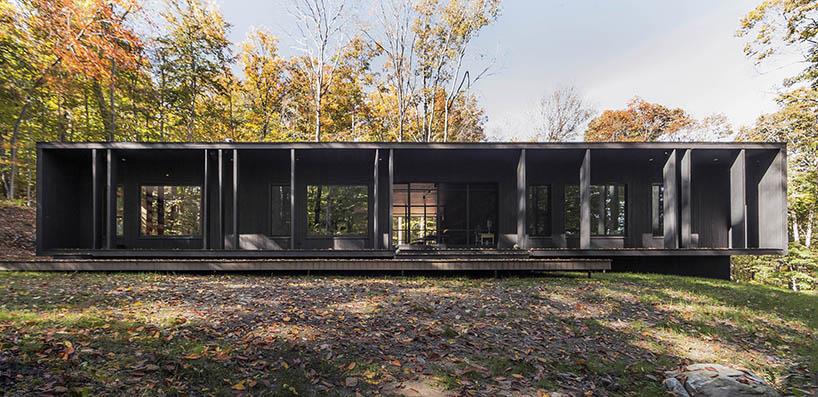 “林中木舍”是一个独立家庭度假屋,位于魁北克省frelighsburg内。住宅由魁北克当地的atelier barda建筑公司与lise gagné建筑事务所根据业主提出的要求共同设计完成。该周末度假住宅在结构方面要易于维护、向周边景观开敞以及利用直交层压材建造。整个设计总共三个部分,被组织在一个体量内:一间主卧及公共区域、一个外...